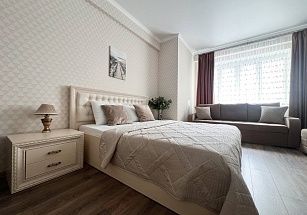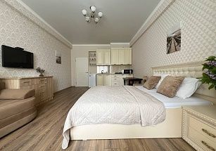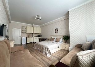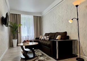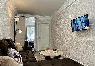 Идеальный вариант для тех, кто ценит уют и высокий уровень комфорта - двухкомнатная квартира премиум-класса в историческом центре Ессентуков, в двух шагах от Курортного парка и минеральных источников. Стильный дизайнерский интерьер, тотальное оснащение всей необходимой бытовой техникой – телевизоры, холодильник, микроволновая печь, стиральная машина, варочная панель. Квартира полностью меблирована, в спальне – двуспальная кровать, в гостиной – диван-кровать. Санузел совмещенный. Предусмотрены комплекты постельного белья и полотенец.
